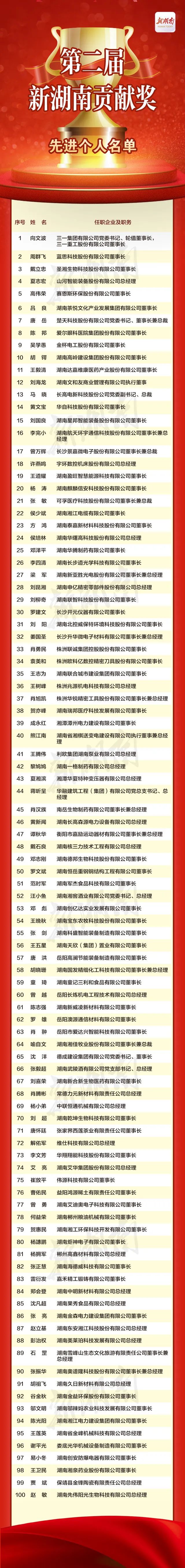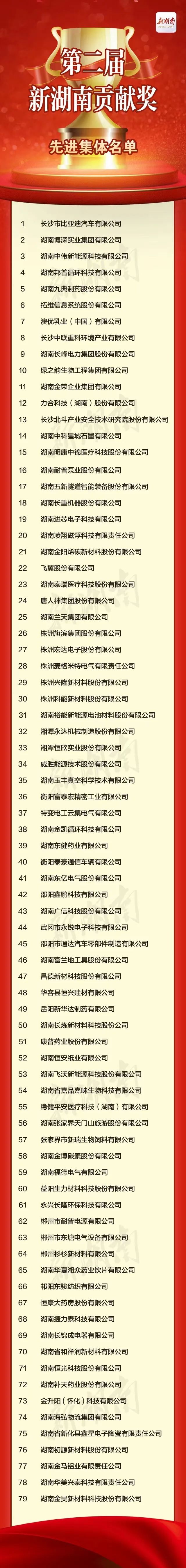 12月25日上午,第二屆新湖南貢獻獎和2023三湘民營企業(yè)百強榜新聞發(fā)布會在長沙召開。會上,副省長秦國文發(fā)布了《關(guān)于表彰第二屆新湖南貢獻獎先進集體和先進個人的決定》。為表彰民營企業(yè)中的先進集體和先進個人,彰顯“選一個典型,樹一面旗幟”的鮮明導(dǎo)向,營造崇尚先進、學(xué)習(xí)先進、爭當(dāng)先進、趕超先進的濃厚氛圍,省委、省人民政府決定,授予湖南裕能新能源電池材料股份有限公司等79家民營企業(yè)“新湖南貢獻獎先進集體”稱號;授予向文波等100名民營企業(yè)家“新湖南貢獻獎先進個人”稱號。